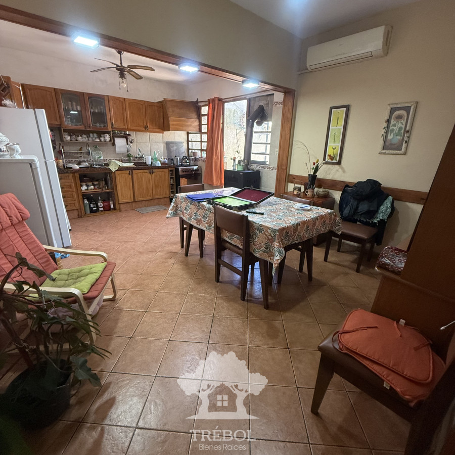 - Cocina-comedor definida, con mucho espacio de guardado en aéreos y bajo mesada. Aire acondicionado, estufa a leña de alto rendimiento y ventilador de techo.