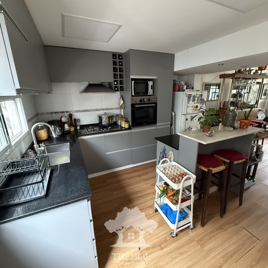- Cocina integrada totalmente reciclada con un estilo moderno. Excelente espacio de guardado en aéreos y bajo mesada; anafe y horno empotrado. Cómoda isla y barra desayunadora.